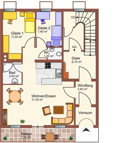 65 m² Apartment für bis zu 4 Personen